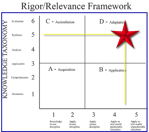 Scenario #5: 5th Grade TeacherAs part of a statewide “art” grant, my students are involved in creating web pages that highlight the history of our city. These web pages (all done by students) include sections relating to the development of the downtown business area as well as our city’s original housing “subdivision.” Students are also linking their web pages to our Chamber of Commerce web page. *** Technology spectrum: In perhaps an unintended use of the term "community learning," these students are delving into the lives of the city in which they live. I'm hoping that the students are using technology to connect with others, as well as to design their art. Once the web pages are linked to the Chamber of Commerce web site, the assignment reaches the Transforming Uses category in its ability to produce and share information of interest to the entire community. *** Learning spectrum: Although it's obviously not possible to design a web page without a Transforming Use of technology, that's not why I place this scenario in that category. Instead, I put it there because, based on the few sentences of the scenario, I imagine the students have free creative rein on their web projects. *** Rigor/relevance: Allowing students to develop their own art via technology -- synthesis -- moves this scenario well into Quadrant D. When students begin to receive non-educator feedback on their web pages (from visitors to the Chamber website) they'll get a dose of unpredicability as well! *** Recommendation: Move this assignment deeper into Quadrant D of the rigor/relevance chart by tracking the changes between the historical and current city situations, and evaluate the quality and usefulness of the changes. In other words, is there really such a thing as "the good old days"? << Scenario 4 | Home | Scenario 6 >> |